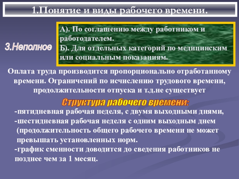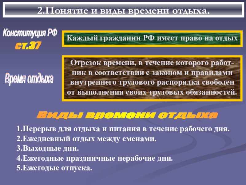 1.Перерыв для отдыха и питания в течение рабочего дня.