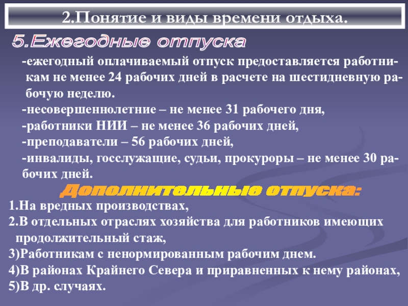 -пятидневная рабочая неделя, с двумя выходными днями,