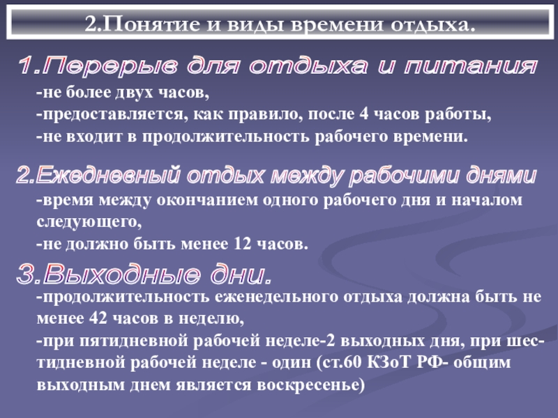 тидневной рабочей неделе - один (ст.60 КЗоТ РФ- общим