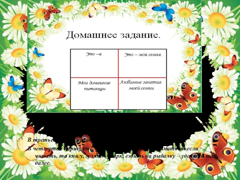 В четвертой нарисуйте – то, чем вы любите заниматься: если читать, то книгу, гулять – парк, ездить на рыбалку – удочки и так далее.