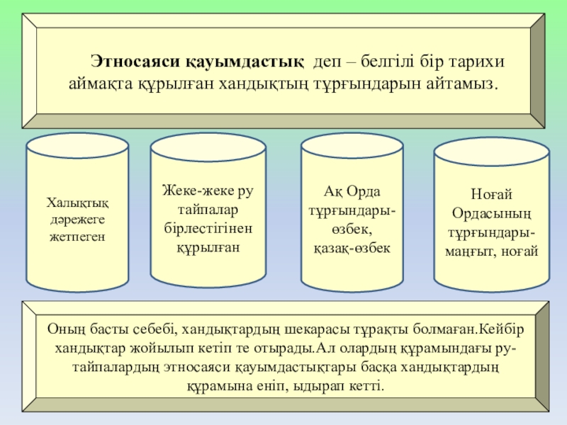 Оның басты себебі, хандықтардың шекарасы тұрақты болмаған.Кейбір хандықтар жойылып кетіп те отырады.Ал олардың құрамындағы ру-тайпалардың этносаяси қауымдастықтары басқа хандықтардың құрамына еніп, ыдырап кетті.