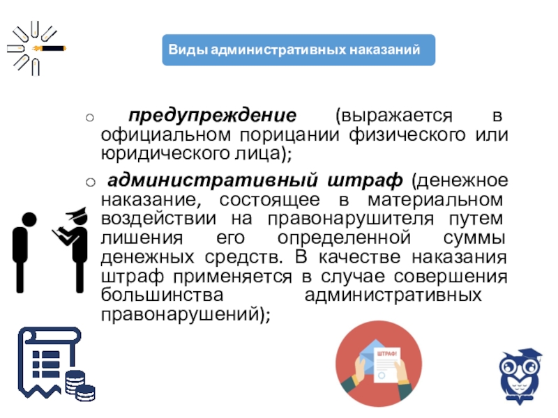 Слайд 23 предупреждение (выражается в официальном порицании физического или юридического лица);
