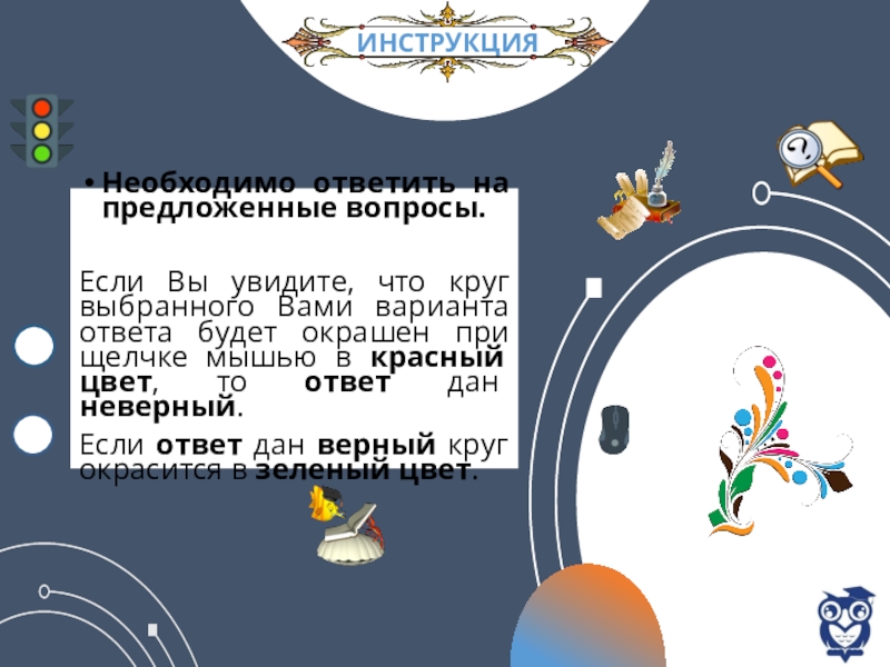 варианта ответа будет окрашен при щелчке мышью в красный цвет, то ответ дан неверный.