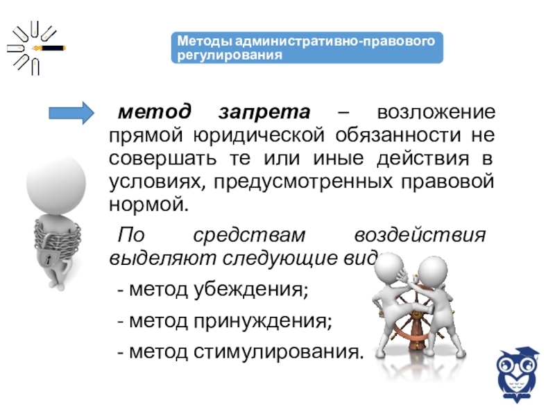 Слайд 11метод запрета – возложение прямой юридической обязанности не совершать те или