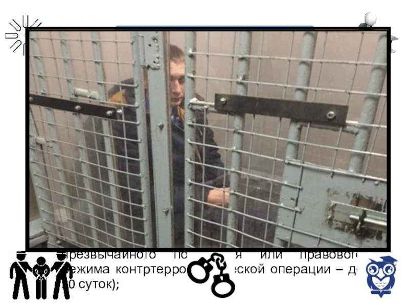 административный арест (на срок до 15 суток, а за нарушение требований режима чрезвычайного положения или правового режима контртеррористической операции – до 30 суток);