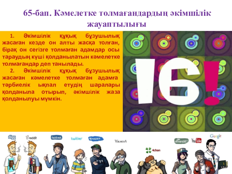 65-бап. Кәмелетке толмағандардың әкiмшiлiк жауаптылығы