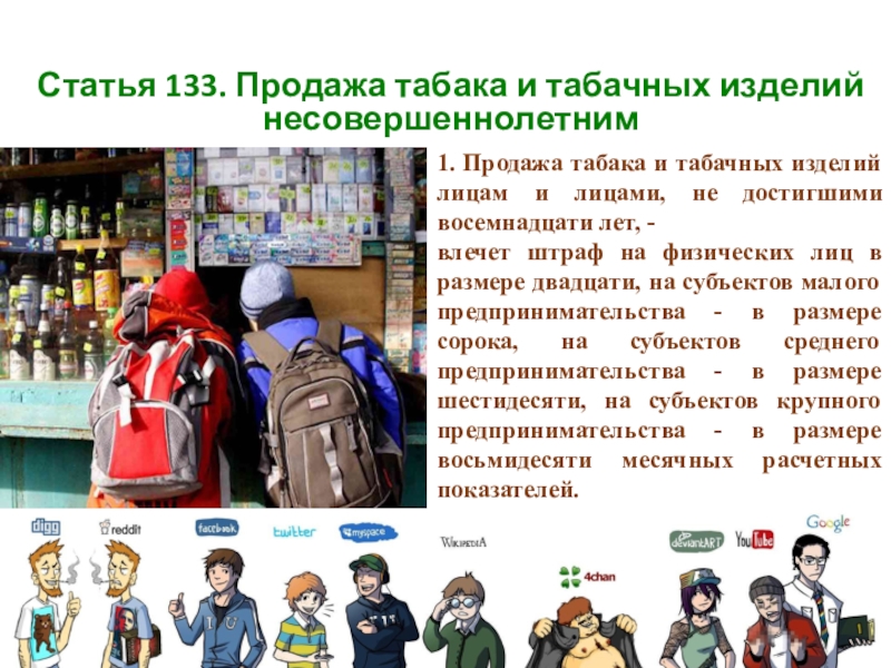 133-бап. Он сегiз жасқа толмаған адамдарға темекiнi және темекi бұйымдарын сату және олардың сатуы