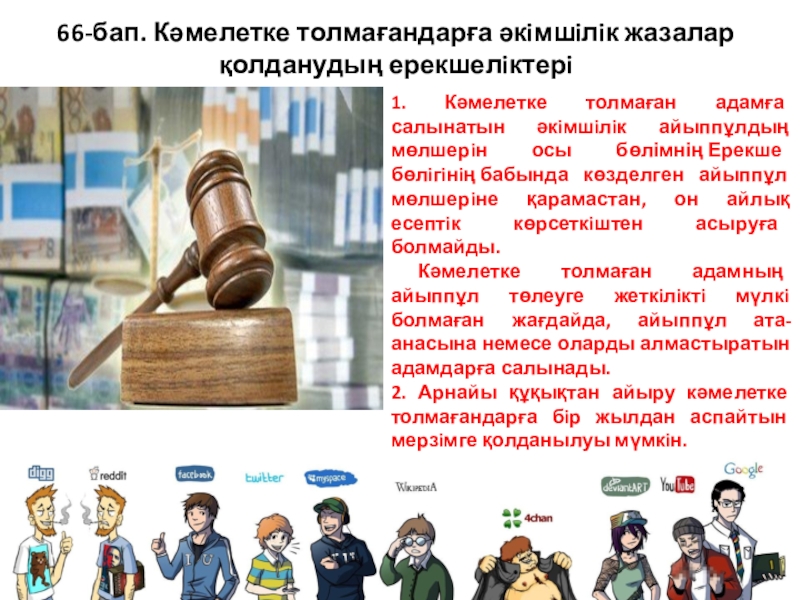 66-бап. Кәмелетке толмағандарға әкiмшiлiк жазалар қолданудың ерекшелiктерi