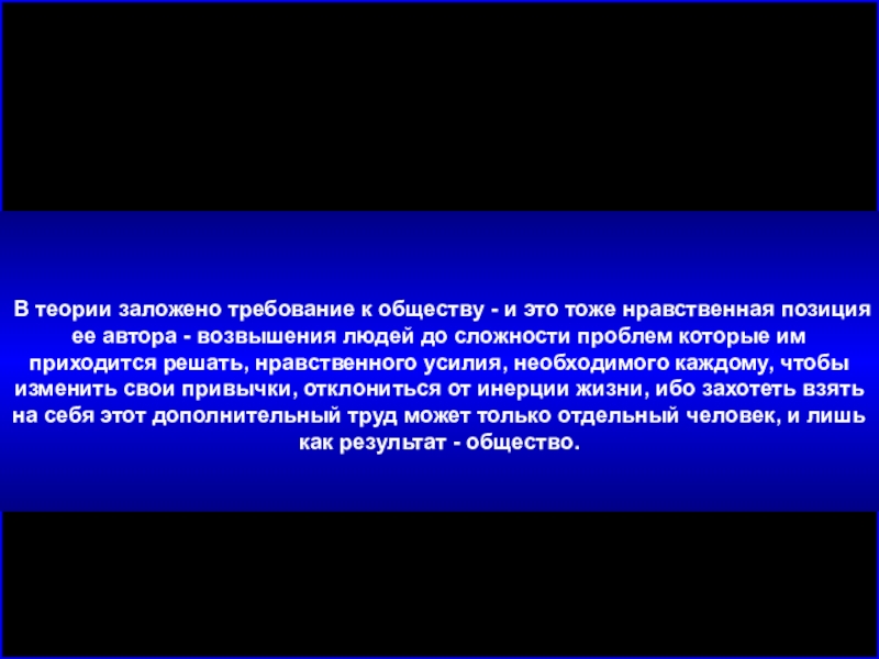 нравственная позиция ее автора - возвышения людей до сложности проблем которые им приходится решать, нравственного усилия, необходимого каждому, чтобы изменить свои привычки, отклониться от инерции жизни, ибо захотеть взять на себя этот дополнительный труд может только отдельный человек, и лишь как результат - общество.