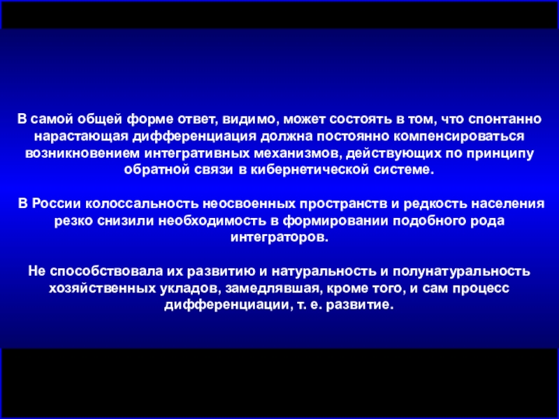 Не способствовала их развитию и натуральность и полунатуральность хозяйственных укладов, замедлявшая, кроме того, и сам процесс дифференциации, т. е. развитие.