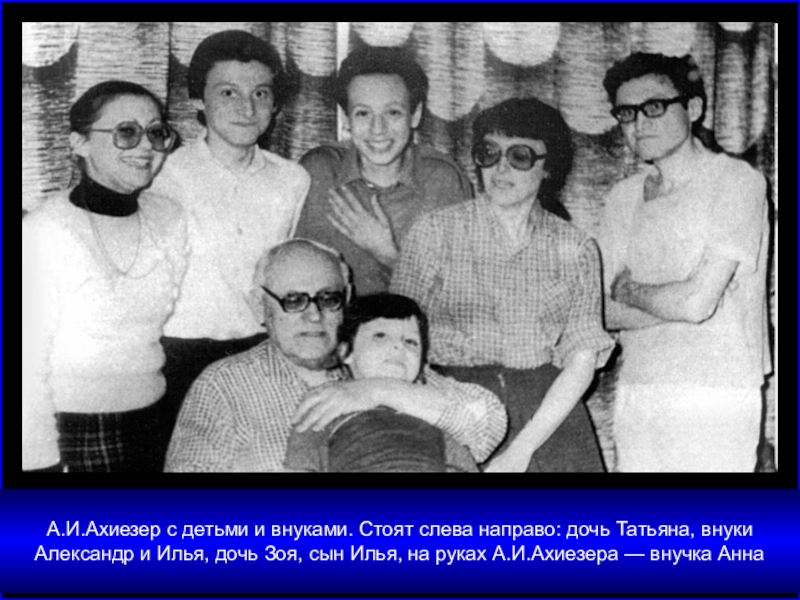 А.И.Ахиезер с детьми и внуками. Стоят слева направо: дочь Татьяна, внуки