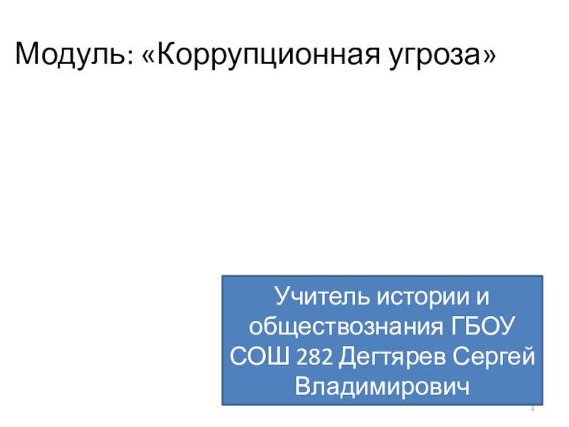 Модуль: «Коррупционная угроза»Учитель истории и обществознания ГБОУ СОШ 282 Дегтярев Сергей Владимирович