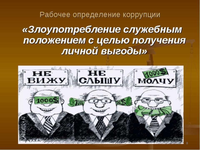 Презентация, доклад на тему Антикоррупционный модуль для использования на уроках обществознания.