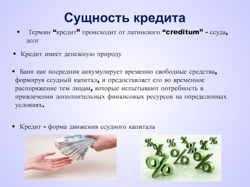 Слайд 16 Термин “кредит” происходит от латинского “creditum” - ссуда, долг