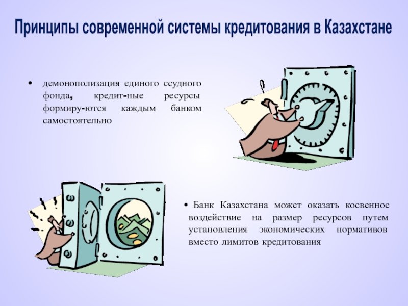 Казахстана может оказать косвенное воздействие на размер ресурсов путем установления экономических нормативов вместо лимитов кредитования