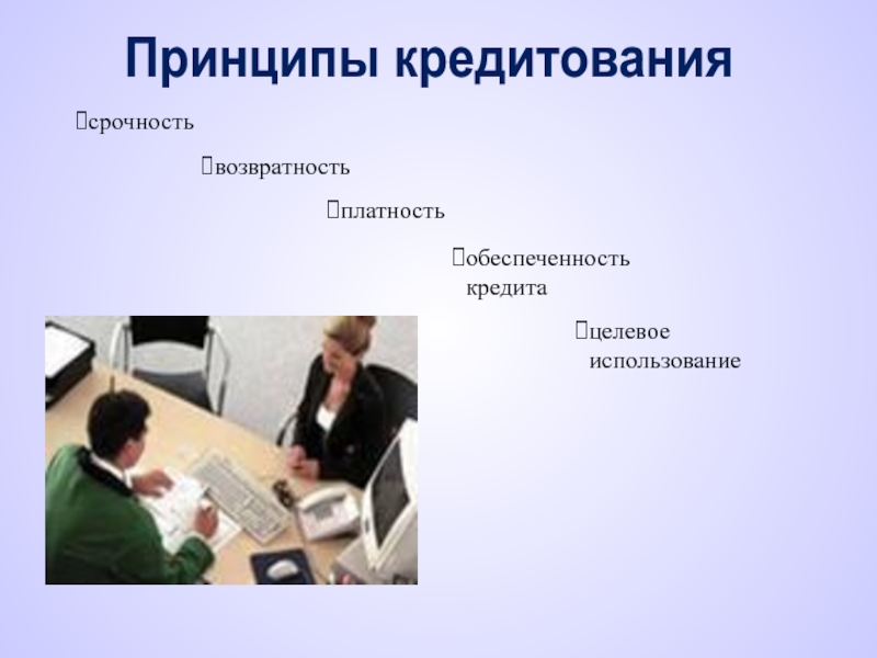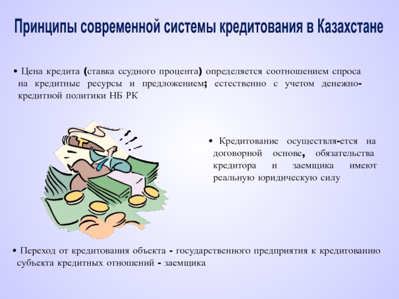 Кредитование осуществля-ется на договорной основе, обязательства кредитора и заемщика имеют реальную юридическую силу