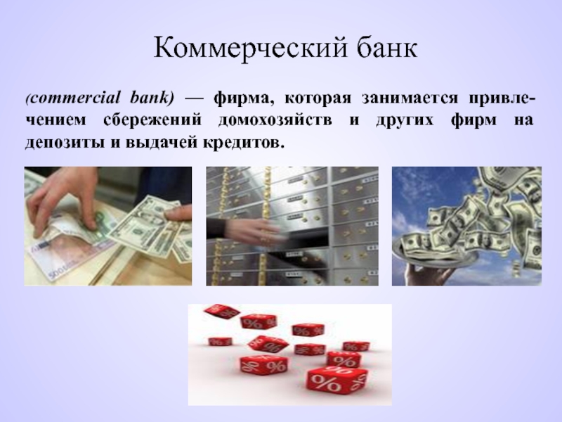 (commercial bank) — фирма, которая занимается привле-чением сбережений домохозяйств и