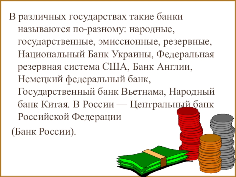 В странах с развитой рыночной экономикой сложились двухуровневые банковские системы. Верхний уровень системы представлен центральным (эмиссионным) банком.
