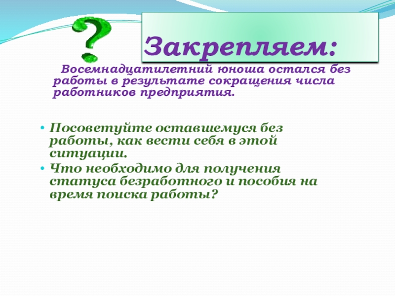 Посоветуйте оставшемуся без работы, как вести себя в этой ситуации.