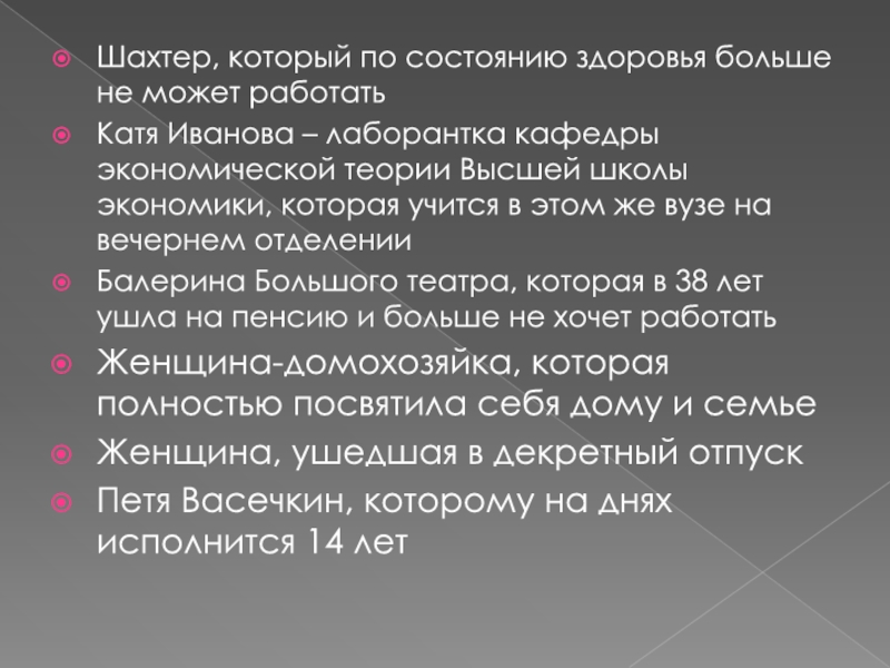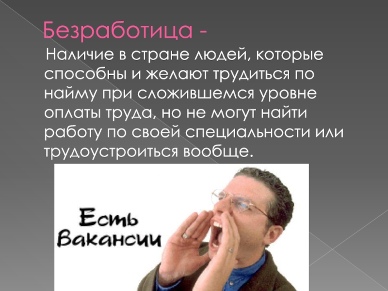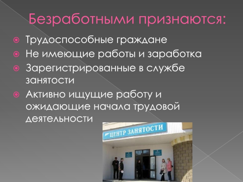 Слесарь, который был уволен с предприятия «Красный богатырь» из-за сокращения числа рабочих мест и , отчаявшись найти работу, прекратил ее поиски