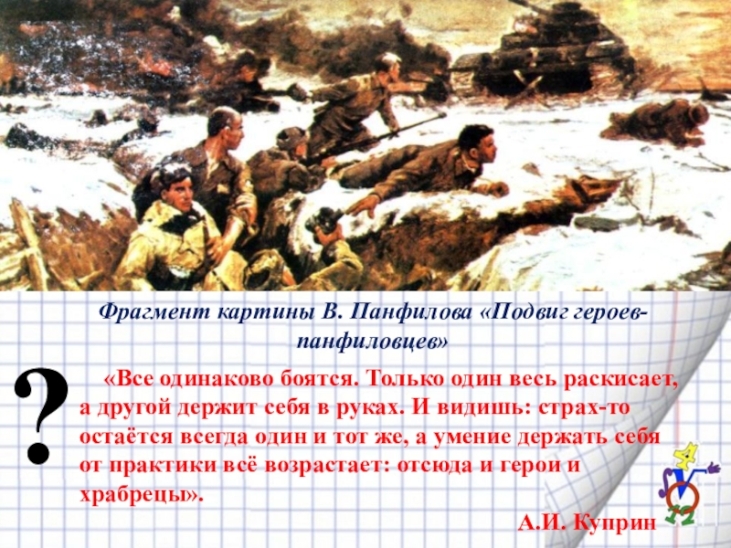 Фрагмент картины В. Панфилова «Подвиг героев-панфиловцев»
