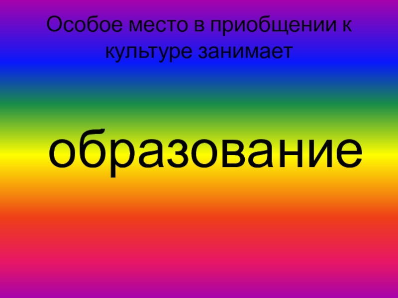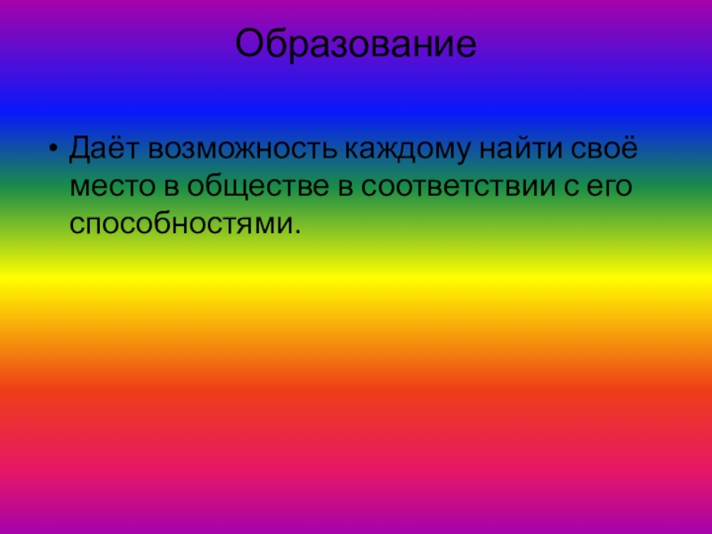 Образование  Даёт возможность каждому найти своё место в обществе в соответствии с его способностями.