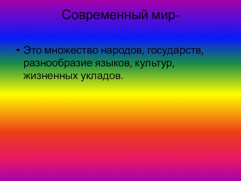 Современный мир- Это множество народов, государств, разнообразие языков, культур, жизненных укладов.