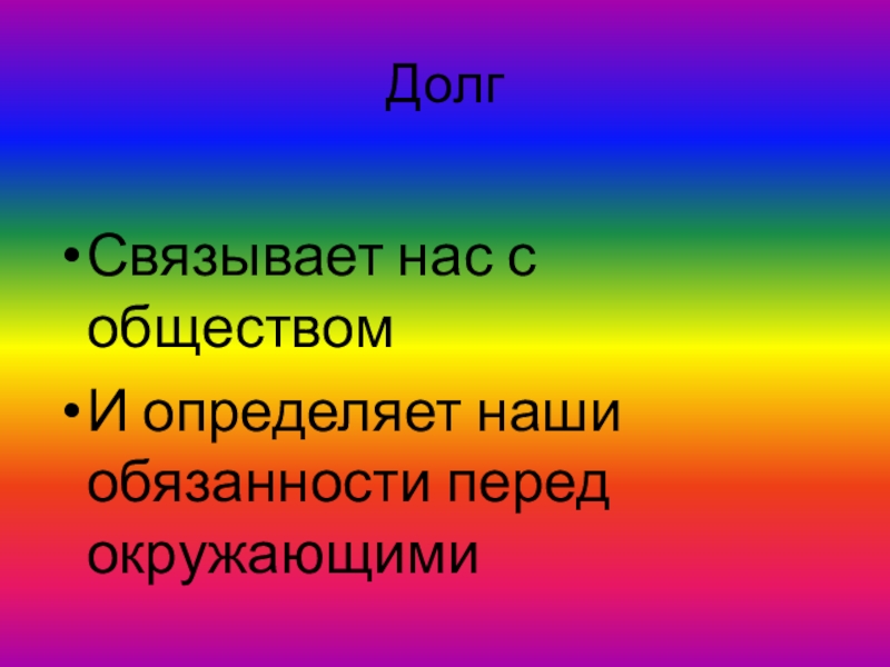 Долг Связывает нас с обществом И определяет наши обязанности перед окружающими