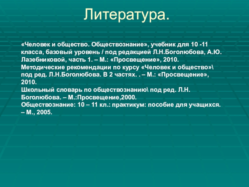 Школьный словарь по обществознанию\ под ред. Л.Н.Боголюбова. – М.:Просвещение,2000.