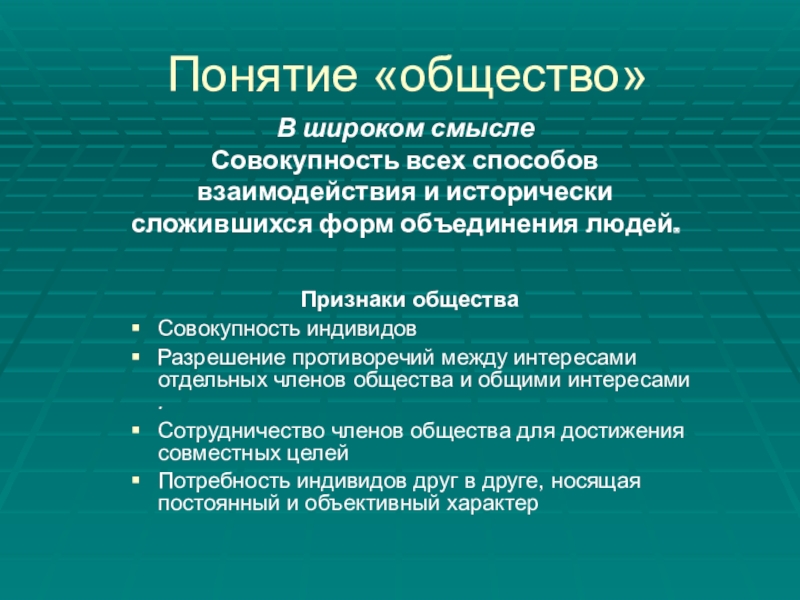 Совокупность всех способов взаимодействия и исторически сложившихся форм объединения людей.
