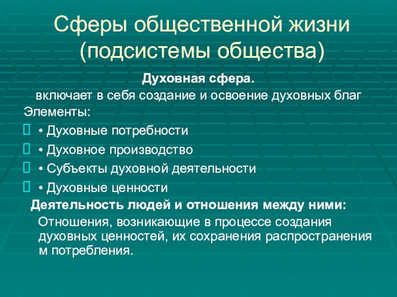 Слайд 12Сферы общественной жизни (подсистемы общества)