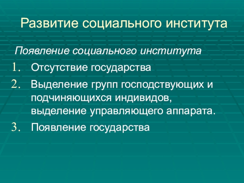 норм, установок, регулирующих некоторую сторону человеческой деятельности и организующих эту сторону жизни как систему ролей и статусов.