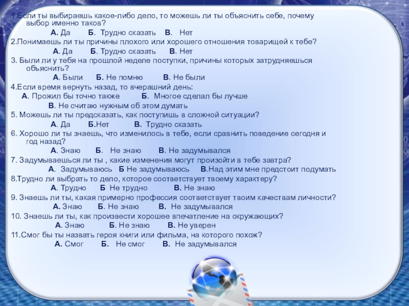 1.Если ты выбираешь какое-либо дело, то можешь ли ты объяснить себе,