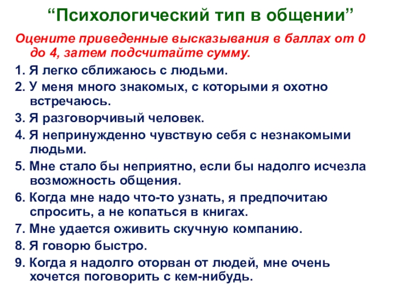 9. Когда я надолго оторван от людей, мне очень хочется поговорить с кем-нибудь.