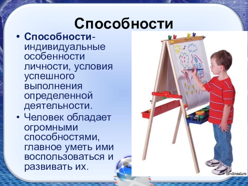 Способности- индивидуальные особенности личности, условия успешного выполнения определенной деятельности.