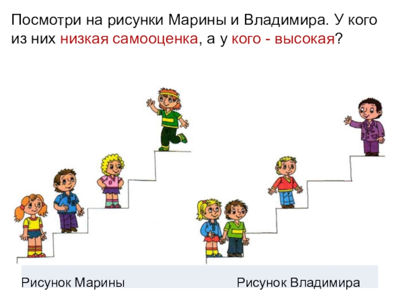 Слайд 24Посмотри на рисунки Марины и Владимира. У кого из них низкая