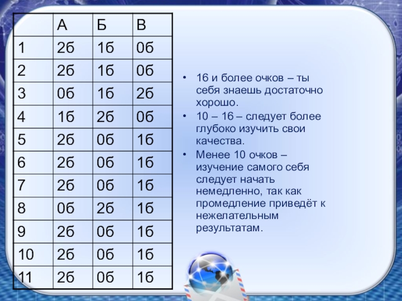 16 и более очков – ты себя знаешь достаточно хорошо.