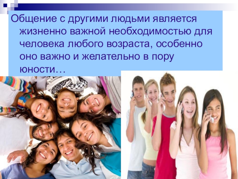 Общение с другими людьми является жизненно важной необходимостью для человека любого возраста, особенно оно важно и желательно