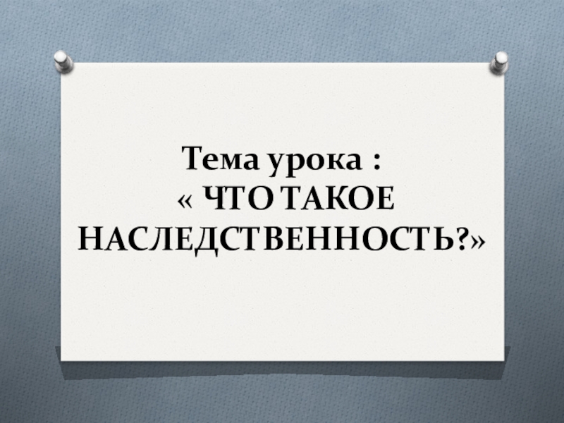 Слайд 1Тема урока : « ЧТО ТАКОЕ НАСЛЕДСТВЕННОСТЬ?»