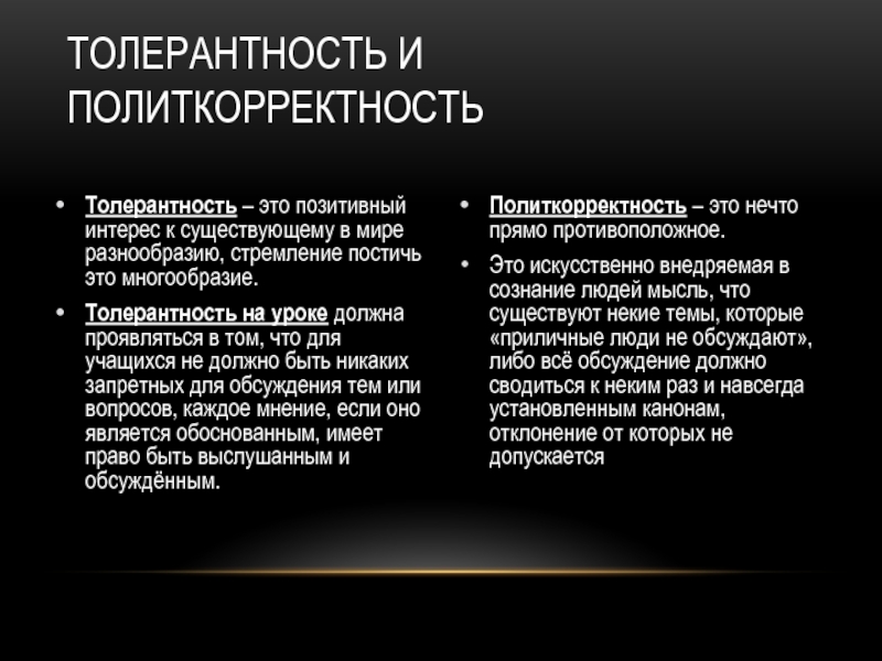 ТОЛЕРАНТНОСТЬ И ПОЛИТКОРРЕКТНОСТЬ