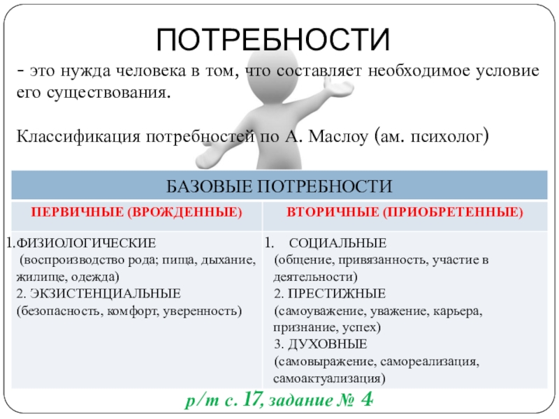Классификация потребностей по А. Маслоу (ам. психолог)