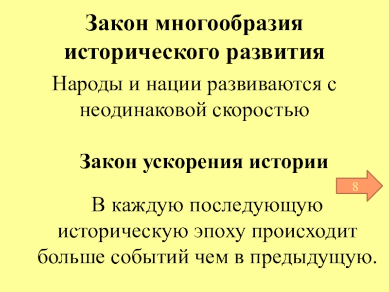 В каждую последующую историческую эпоху происходит больше событий чем в предыдущую.