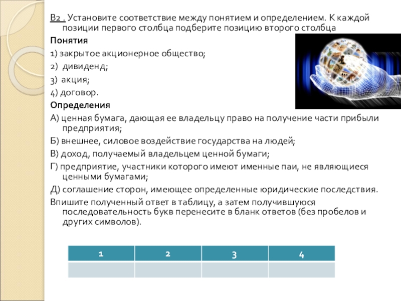 В2 . Установите соответствие между понятием и определением. К каждой позиции