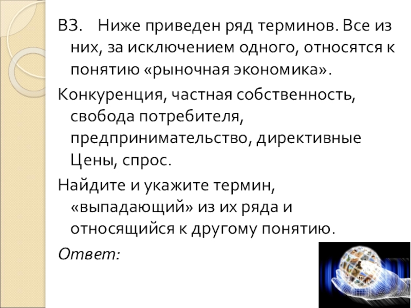 ВЗ. Ниже приведен ряд терминов. Все из них, за исключением