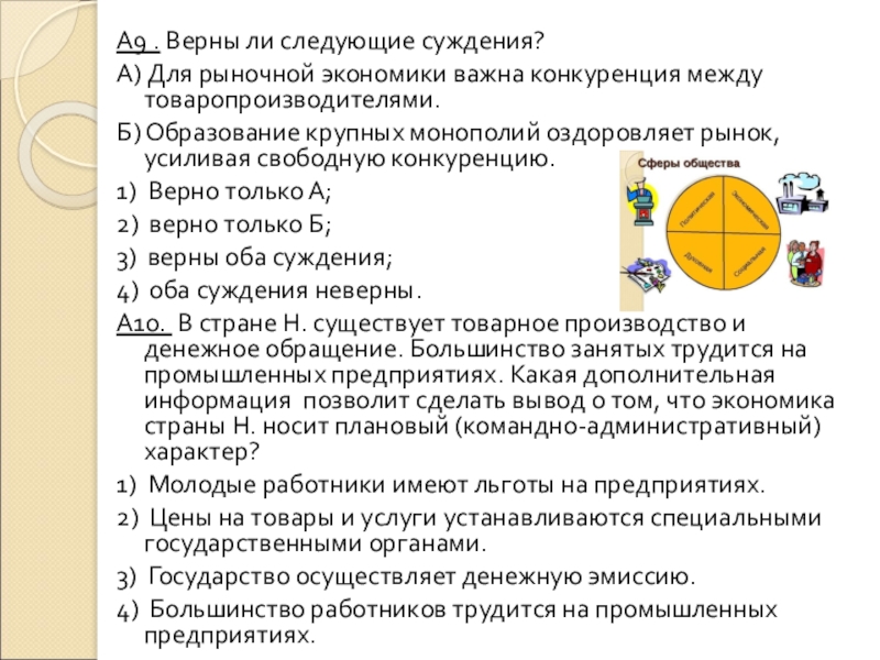 А10. В стране Н. существует товарное производство и денежное обращение. Большинство занятых трудится на промышленных предприятиях. Какая дополнительная информация позволит сделать вывод о том, что экономика страны Н. носит плановый (командно-административный) характер?