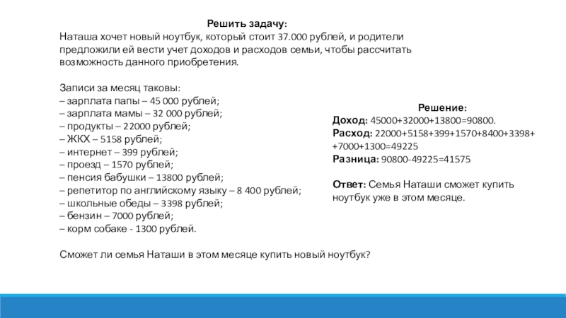 Ответ: Семья Наташи сможет купить ноутбук уже в этом месяце.