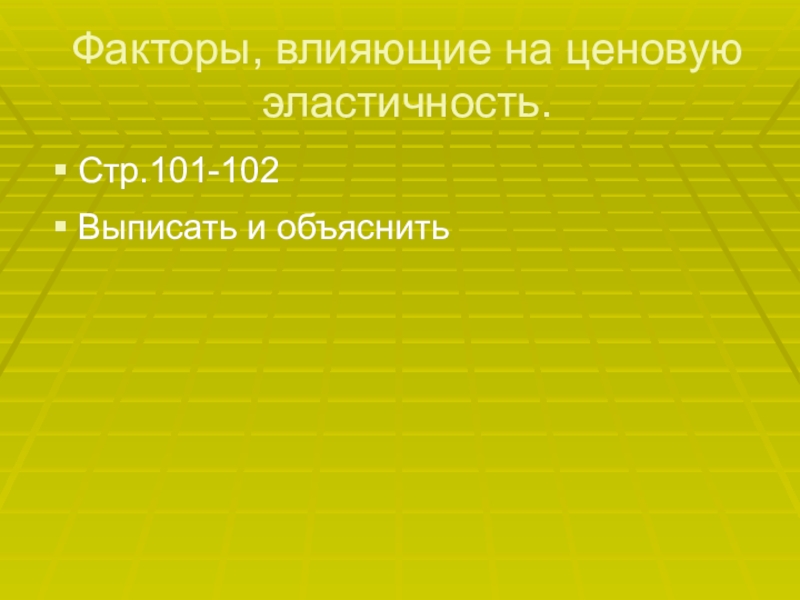 Факторы, влияющие на ценовую эластичность.Стр.101-102Выписать и объяснить