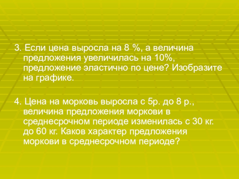 3. Если цена выросла на 8 %, а величина предложения увеличилась на 10%, предложение эластично по цене?
