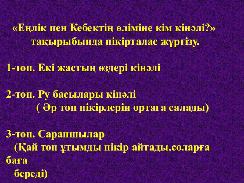 Кебектің Еңлікті алып қашуы,сәбилерінің дүниеге келуі.