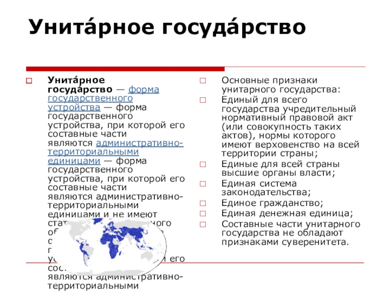 Единый для всего государства учредительный нормативный правовой акт (или совокупность таких актов), нормы которого имеют верховенство на всей территории страны;